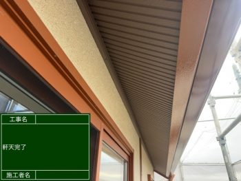 軒天・軒樋・鼻隠し・破風・竪樋・幕板などを塗装します。